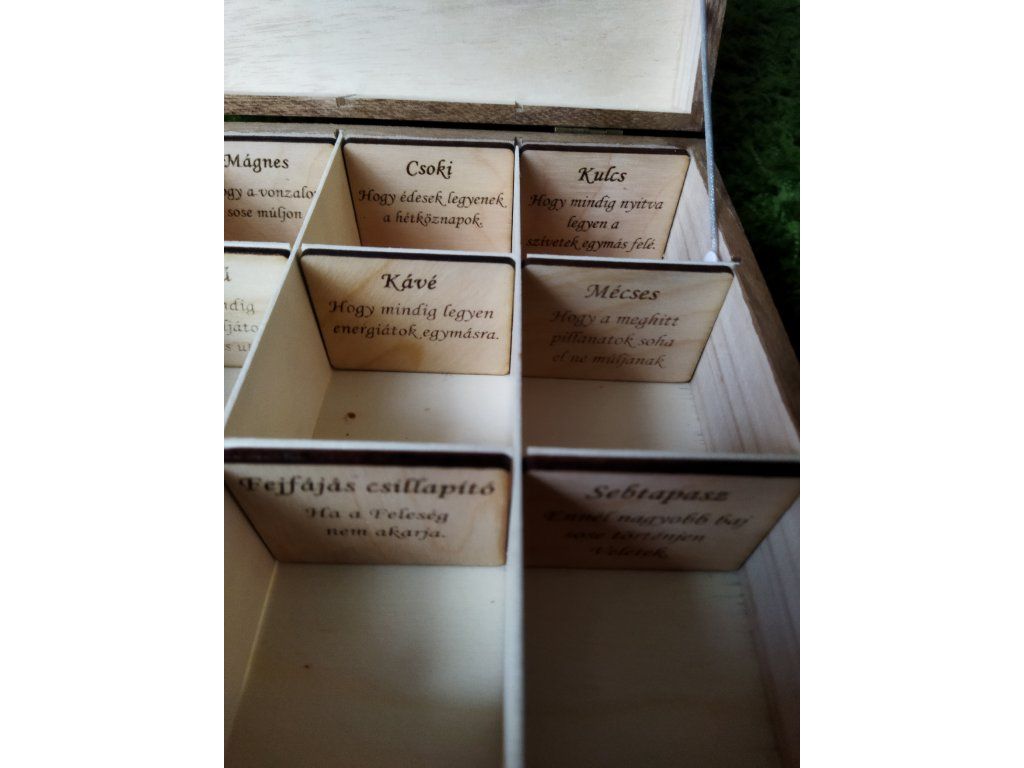 Rendelés során megjegyzésben tüntesse fel, milyen felirattal kéri a dobozt (pár neve, esküvő dátuma).